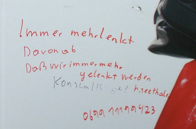 Die Zitate in Titelbild & Text stammen womöglich vom Wiener „Zettelpoeten“ Helmut Seethaler. Jedenfalls habe ich sie über Wien verstreut entdeckt.