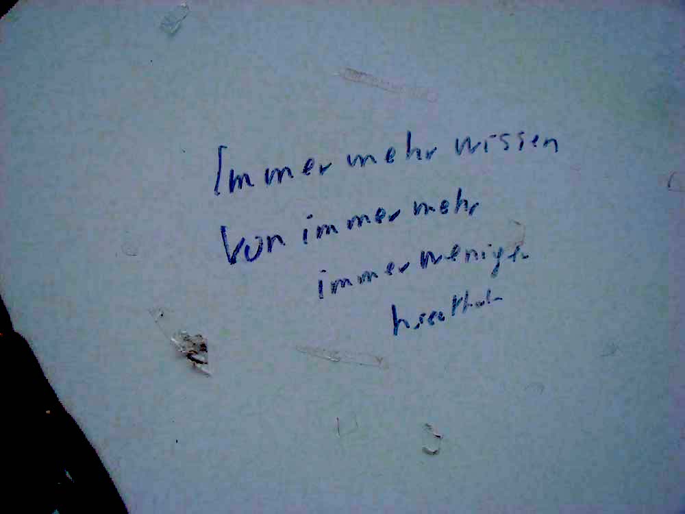 Die Frage „Weisst du was?“ kann ich vorne oder hinten betonen. Dann bedeutet sie jeweils etwas anderes. Vorne betont kann ich sie praktisch nicht mit „Nein“ beantworten. Jede*r weiss irgendwas. Hinten betont werde ich zumindest neugierig. Zumindest ich. Weisst du was? Je mehr wir wissen, umso mehr wissen wir auch um unser Nichtwissen. Alter Hut. Zumindest der Annahme nach. Was mich jedoch – je länger je mehr – irritiert: Diese ganz und gar selbstverständliche Praxis, Wissen als eine Quantität handzuhaben: Ich kann scheinbar nichts, wenig oder viel wissen, nur um am Ende sagen zu können: Ich weiss, dass ich nichts weiss. Haben wir heute tatsächlich so viel Wissen wie nie zuvor? Ich sage: Nö.