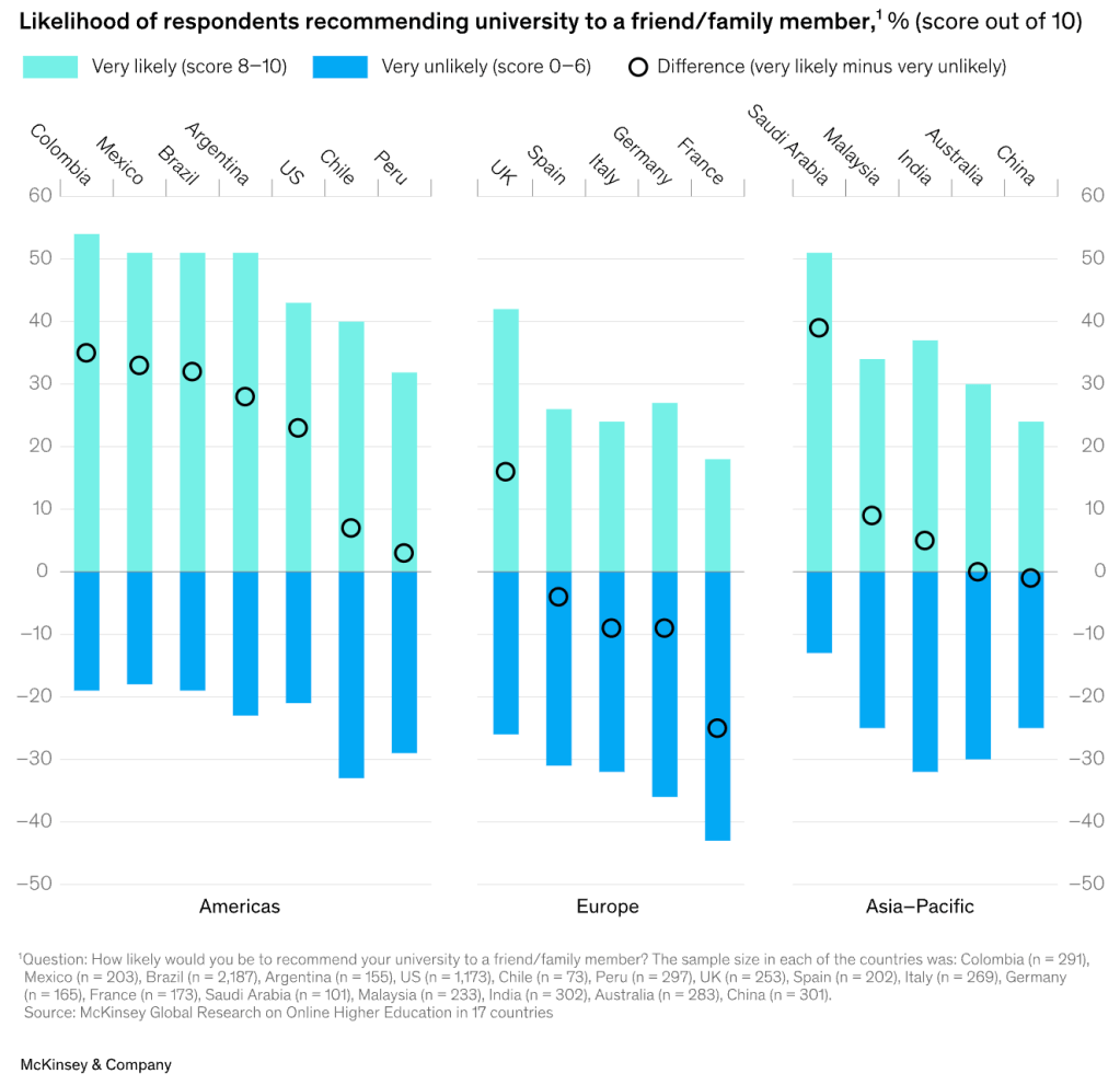 „Beispielsweise gaben Studierende in 16 der 17 Länder an, dass ein sehr gut organisierter Online-Kurs mit einem klaren Weg und einer Schritt-für-Schritt-Anleitung zum Erreichen ihrer Ziele zu ihren fünf wichtigsten Elementen gehört.“