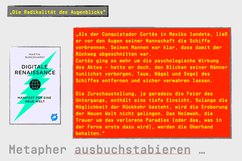 Aber es ist umgekehrt. Die, deren Beruf am Aussterben ist, die Lehrenden, brauchen das Coaching und die Begleitung und die Unterstützung bei der Neuorientierung, denn: Tatsächliches und professionelles Begleiten und Beraten ist bis heute weder ernstzunehmender Teil der Ausbildung noch der Praxis lehrender Berufe – im Sinne von Aufmerksamkeit und Bedeutung, nicht der curricularen Erwähnung. Im Sinne eines roten Fadens, nicht eines Farbtupfers – und wohlgemerkt auch nicht im Sinne eines Schulfachs, denn diese Art der Anwesenheit eines Themas im Bildungskontext führt bekanntermassen nicht notwendig in die damit konnotierte Kompetenz.