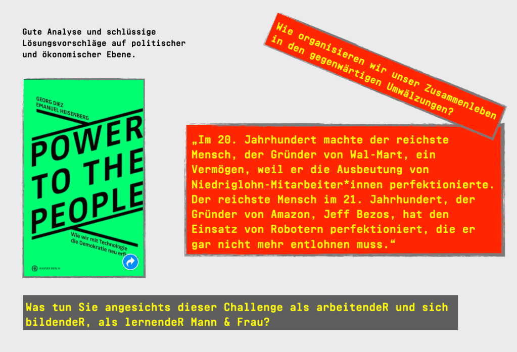 Krass ist: Wie in nahezu allen Berufsfeldern, die den menschlichen Faktor im Angesicht der Digitalisierung für unverzichtbar halten und grundlegend, so gibt es auch im Bildungssystem keine Klarheit darüber, warum und wodurch dieser menschliche Faktor – hier und jetzt – auf ein Minimum schrumpft und darüber, was dann noch „menschlich“ bleibt und warum.